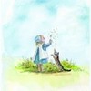 大国主大神の目の前に、波の上に光り輝く黄金の玉