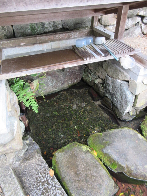 御神像のすぐそばにある手水舎、今は柄杓を置いてなく