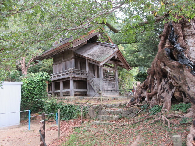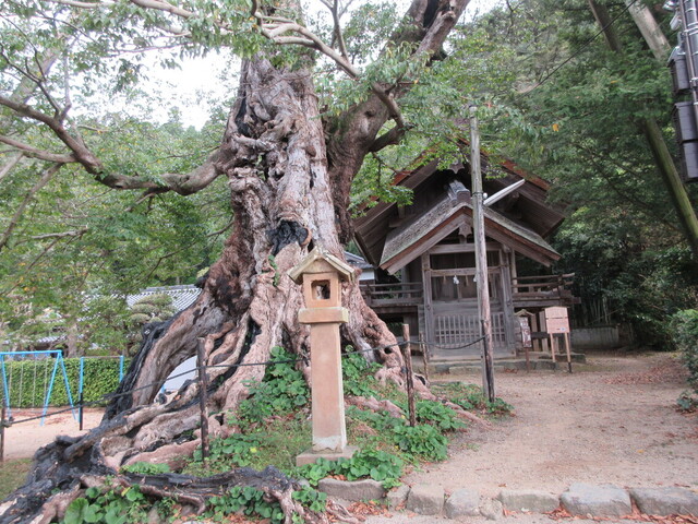 命主社前に、推定樹齢1000年といわれるムクノキ