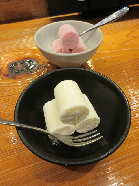 ・生チョコアイス 450円 …4種。カチカチに凍ってますが癖になる〆デザート。写真はバニラとイチゴ。
