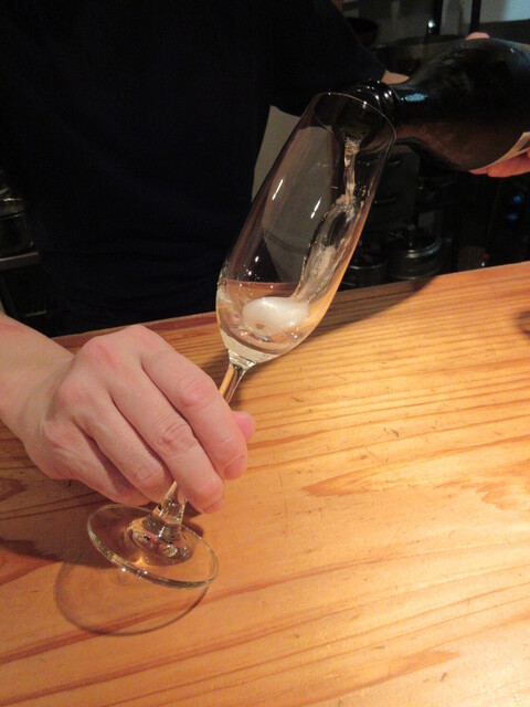 先に到着し、待ち時間でスパークリングワインを選ぶ。