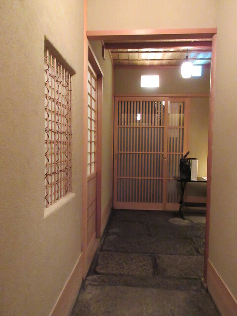 入口の扉を引いた瞬間から雰囲気ががらりと変わる、市中の山居のような数寄屋造り。