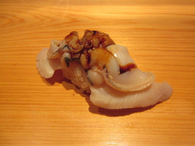 ④北寄貝(北海道苫小牧) …炙りの甘味とムキッとした食感。酢橘、塩、山葵。