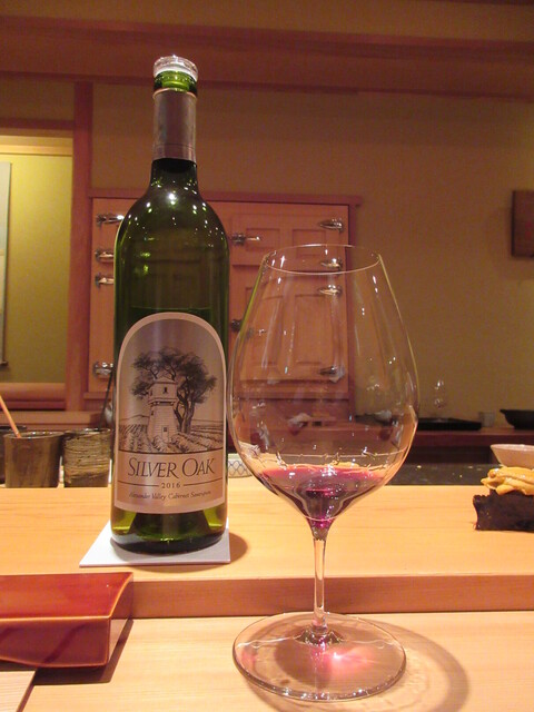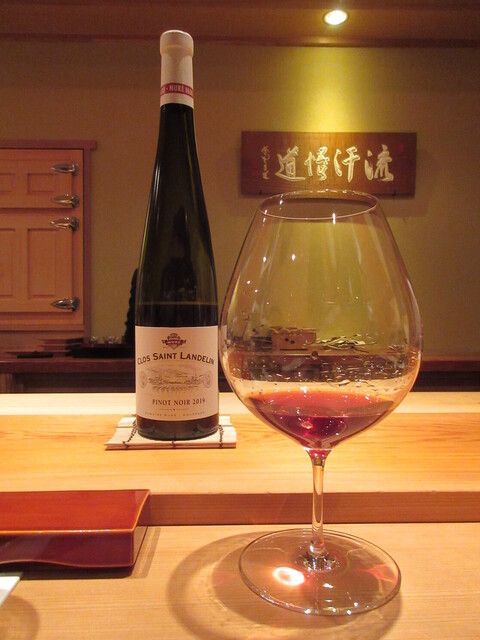 白のグラスをおまかせでお願いして、鮪には赤ワインを。