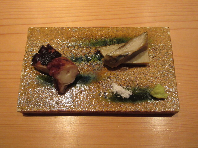 ③真蛸 (長崎志々伎)、鮑 (福岡津屋崎) …蛸は山葵、鮑は塩・肝ソースで。