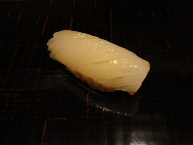 齋藤さんの握りは手数少なく、握り上げる所作が綺麗で見惚れてると「鮃からねー」と置かれた鮨。