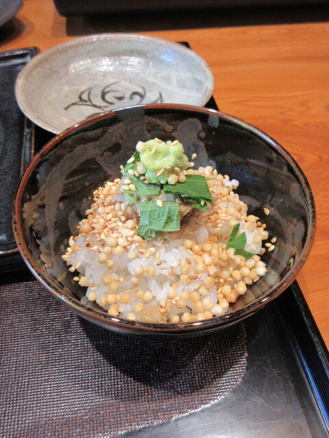 小皿には、天然真鯛のペーストに胡麻と醤油を合わせた、鯛そぼろ。