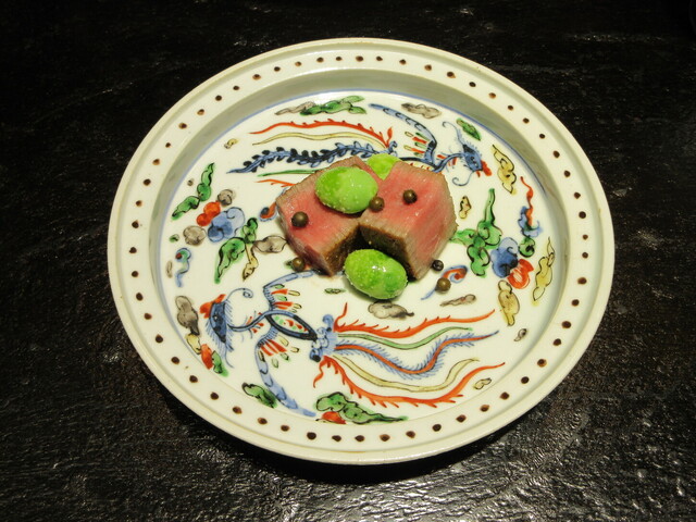 ・佐賀牛 …ヒレの炭火焼、新銀杏(熊本)、無農薬生黒胡椒の塩漬け。