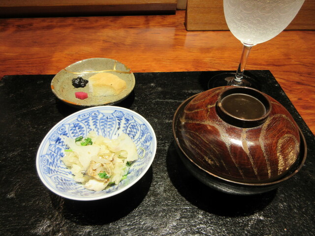 ・イクラ …初物イクラ。金糸瓜、赤海胆たっぷり、柚子出汁。