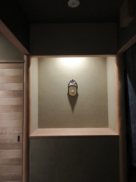 店内の壁に、京都・嵯峨で作られる厄除嵯峨面の卯。