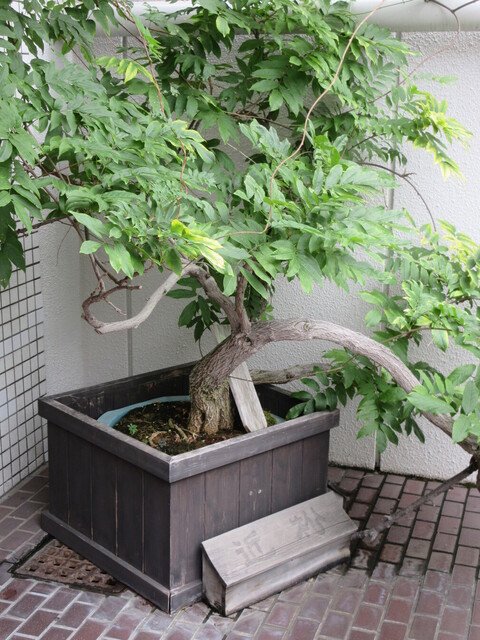 建物内のアプローチを抜ける。ここの盆栽を愛でるのがマイブーム。