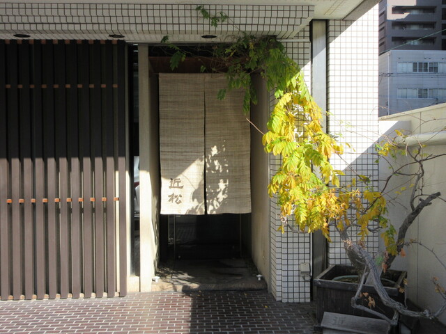 アプローチに盆栽。壁に季節の花。一流の設え。化粧室にだけジャズのBGMで良い香り。