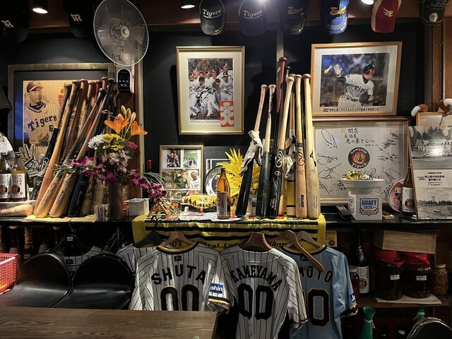 店内は阪神タイガースの選手が実際に使用していたお宝グッズが大量に飾られています。