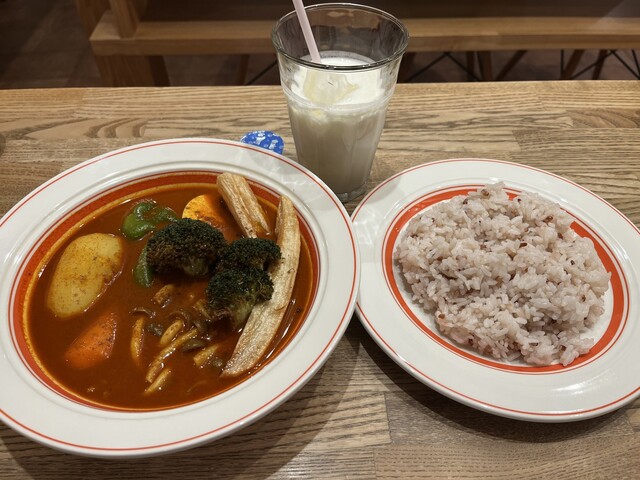 しめじ野菜250番+ブロッコリー+レンコン、パインラッシー