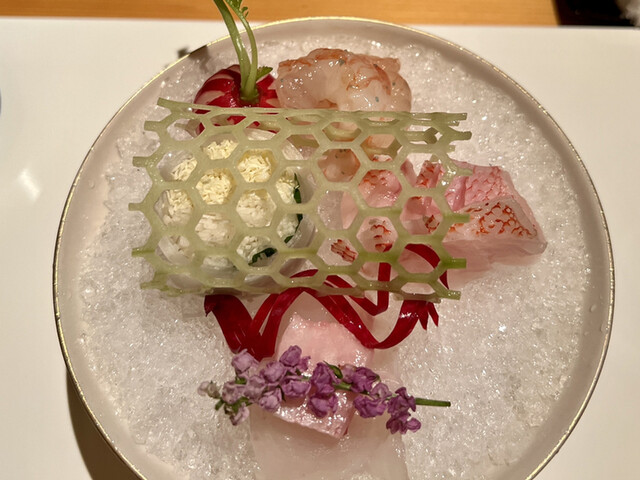 網走のキンキ炭火焼き、いくら、辛味大根、青南蛮のオイル