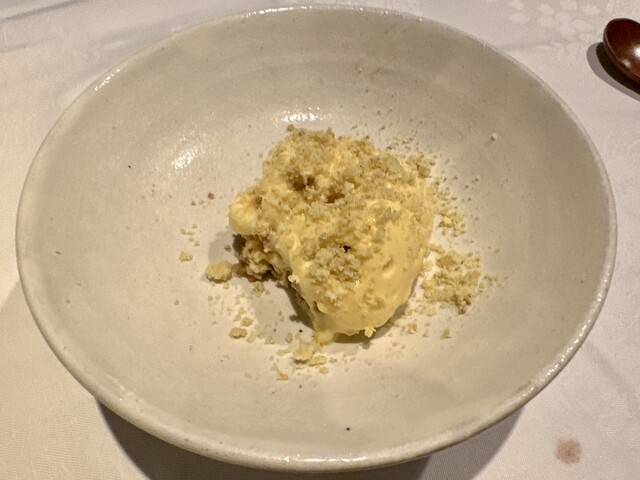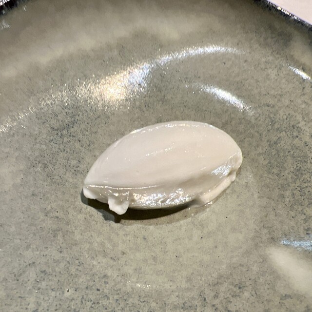 凍らせたリコッタに求肥で巻いた無花果。