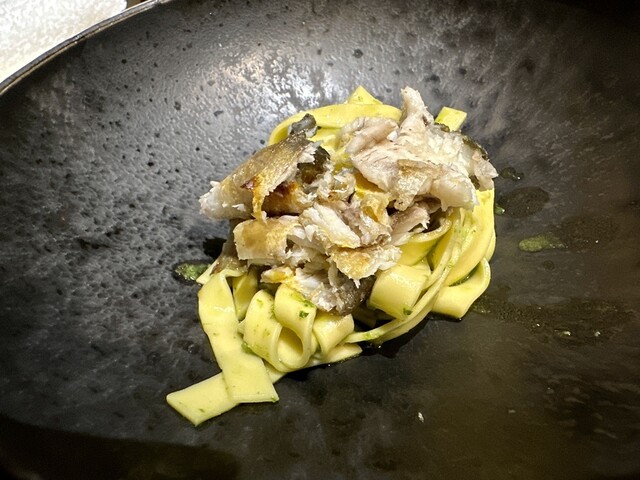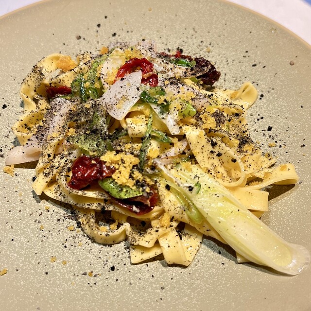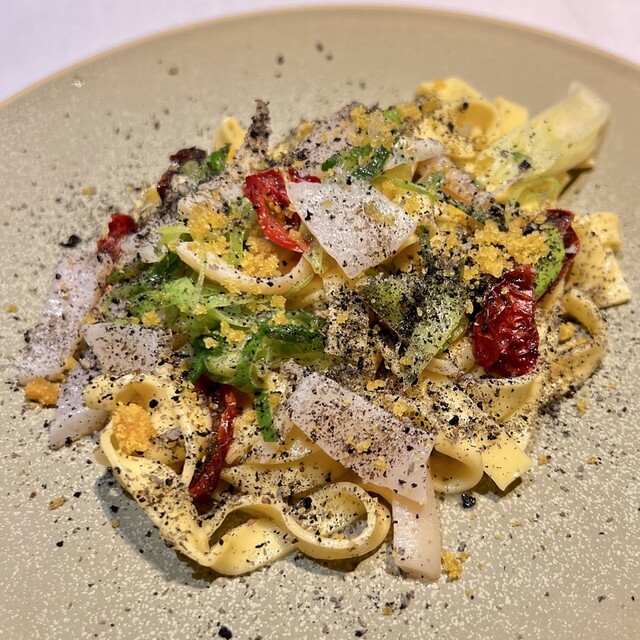 パスタ三河の穴子に初恋トマト木の芽