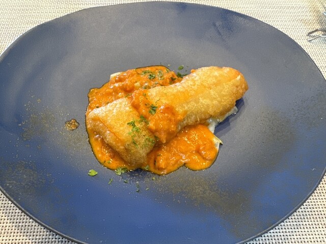 魚はサーモンをフリットにしてアメリケーヌソース+ラタトゥユ。