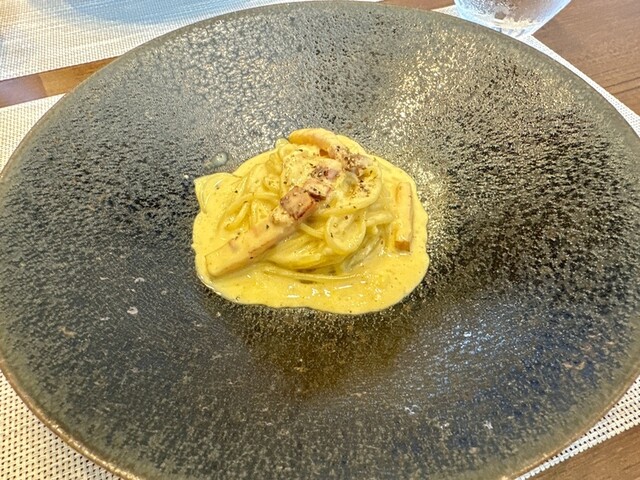 ここでサプライズの鮎とゴーヤのパスタを出してくれました。