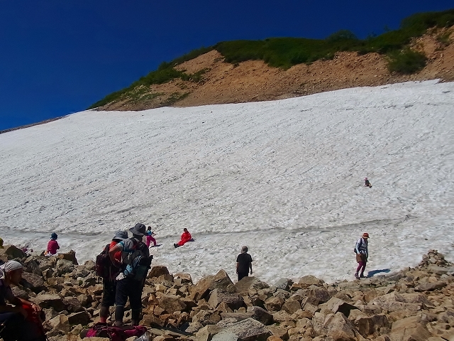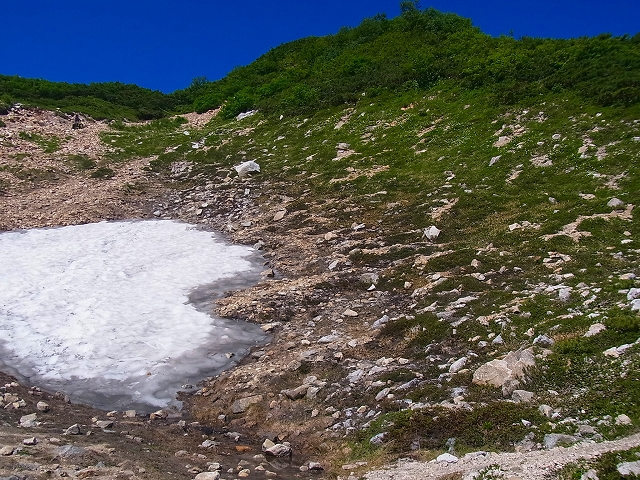 そろそろ嫌になってきた頃・・・突然現れた、大雪渓。