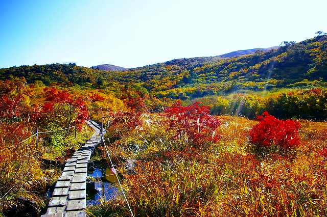錦秋の木道
