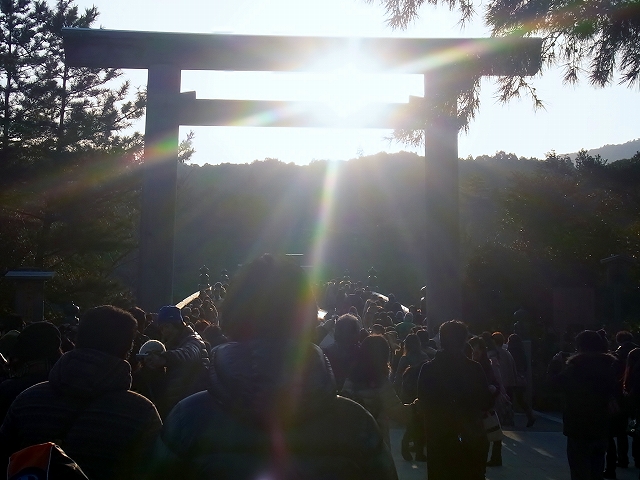 内宮・鳥居にかかる朝日(1/2)