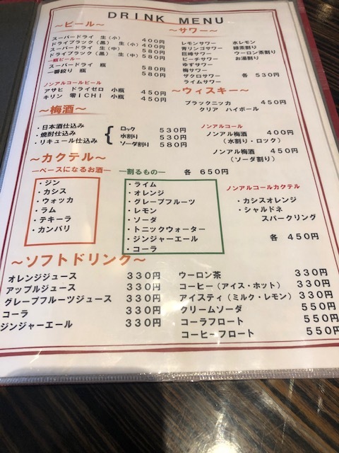ドリンクメニュー
