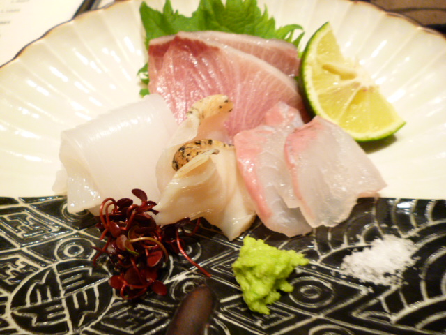 ヒラメ、ツブガイ、やりいか、ぶりのお刺身