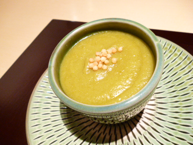 先付:下仁田ネギポタージュに鴨の脂、下には茶碗蒸しとチーズ
