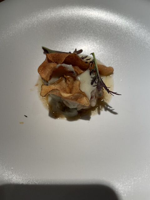 ・白子のムニエル、焦がしバター・チーズ・菊芋のチップス