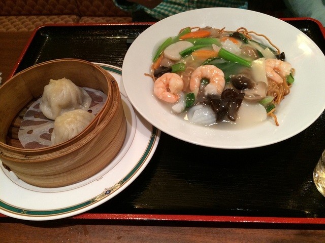 小籠湯包、鳥の唐揚げ、あんかけ五目焼きそば、レタスチャーハンを注文しました。