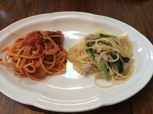 スパゲッティは、自家栽培バジリコ入りイカのトマトソースが超絶品でした。
