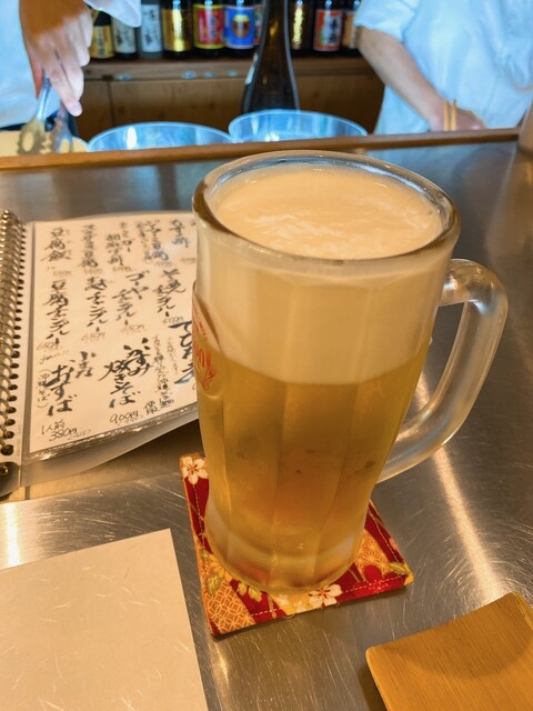 生ビール、キャベツ、串焼き6本持ち。