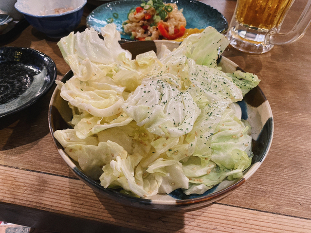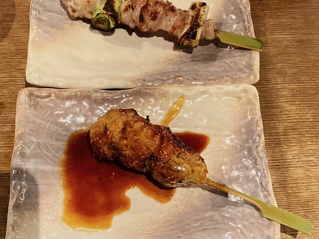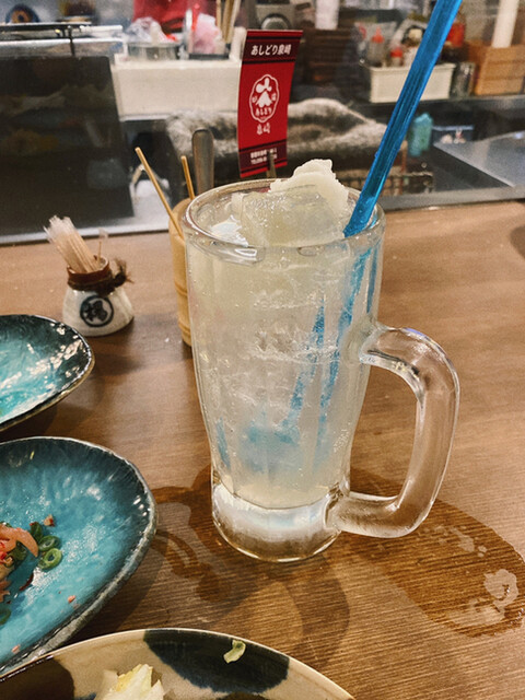 生ビール、突き出し、ごま塩キャベツ、マグロのタタキ梅わさびあえ、あしどりレモンサワー、串6本盛り、九条ネギ肉巻き、アスパラ肉巻き、やみつきセロリ、塩レモンサワー、せせり、ねぎま、皮