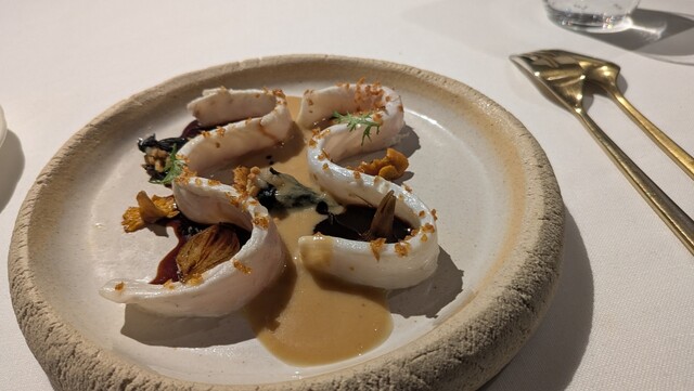 これが意に反し中々の優れもの海と森の王が見事なコラボを演じたる様に思わず脱帽した次第にて候。つづいて「我が山のノロジカヘーゼルナッツ添え」。