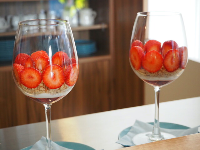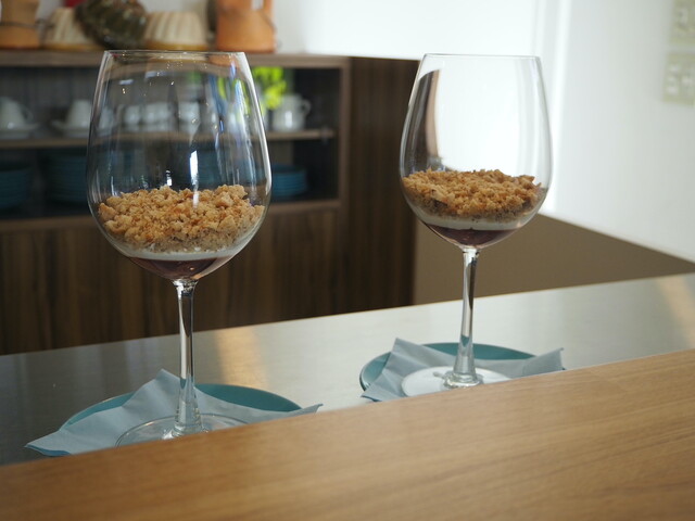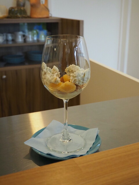 個人的には、グラスにクッキー等で蓋をして、上に飾り付けて、食べるときは、上と下に分離してってスタイルよりは、グラスの中でひとつにまとまっているタイプの方がテンションあがるので、最近のノノさんのパルフェのスタイルが大好きです♪