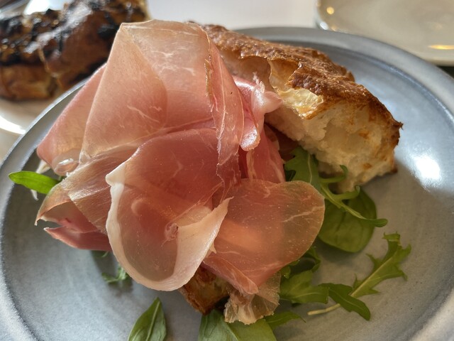 悩んだ結果、キッシュ(700)と生ハムパニーニ(650)と玉ねぎのフォカッチャ(350)を注文。炭水化物多め(笑)