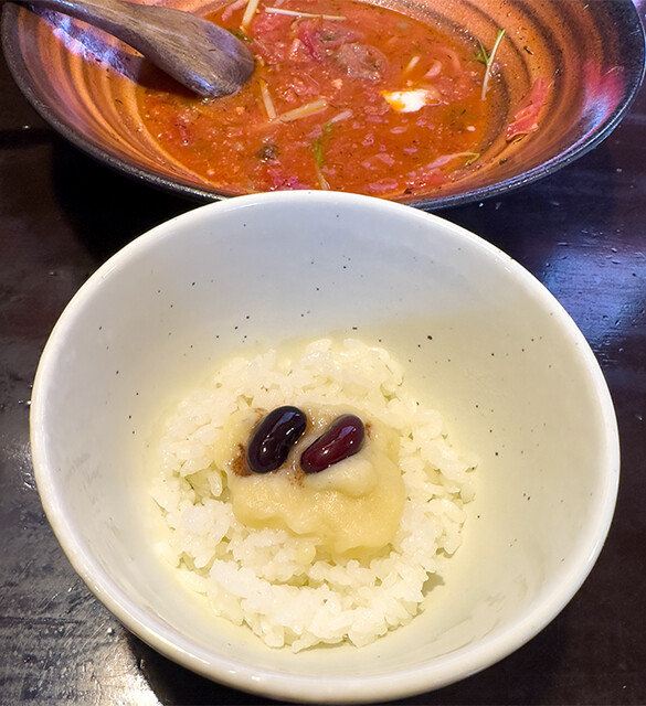 お店のオススメでは、麺を食べ終わったら残ったスープをこの丼にぶっかけてカレー丼にって!