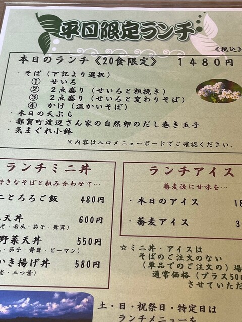 本日の蕎麦は秋そばと丸岡在来のブレンド