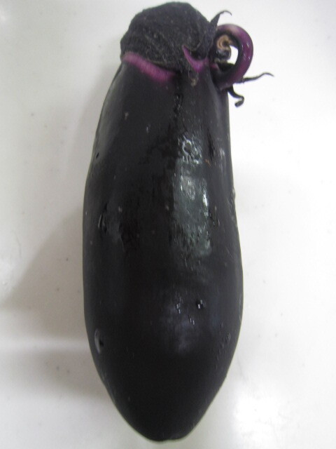 地元・西友の産直野菜コーナーで連れて帰ってきたナスです。