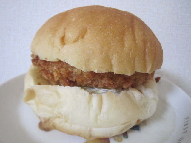メンチカツバーガーは1つでもずっしり重いです。メンチカツに厚みがあって、食べ応えばっちり。