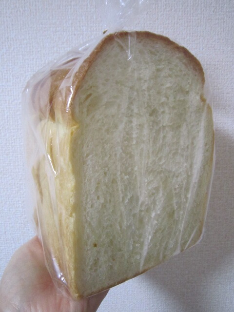 小ぶりでやや細身の食パンは、袋を開けるとよもぎの緑の香りがします。