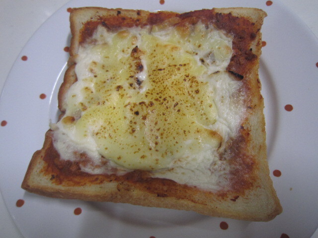 これまた名前を失念したミートソースにチーズがとろけたトーストは気に入りました。ピザトーストだとありがちですが、そうじゃないところがイイ。このミートソースが旨いんです。チーズによく合ってる。