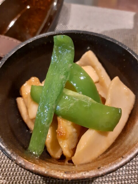 お通しの茄子のそぼろあんかけは、茄子がトロトロで熱々、旨い‼️