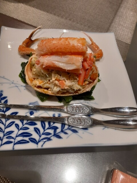 お通しは鯛子と白子の含め煮。堪らなく美味しい。雄のズワイガニは小振りながら甘味が強くとても美味しい。5月半ばにズワイガニの雄を頂けるなんてとても贅沢な気分。海鮮サラダは新鮮な刺身がたっぷり。タコ、カツオ、鯛他大降りで新鮮なの刺身がごろごろ、美味しい。鯛の兜蒸し、上品で美味しい。里芋と茄子の揚げ浸しも美味しかった。久々の訪問にテンションが上がりたらふく食べてガンガン飲んでしまいました。あー幸せ!ごちそうさまでした。