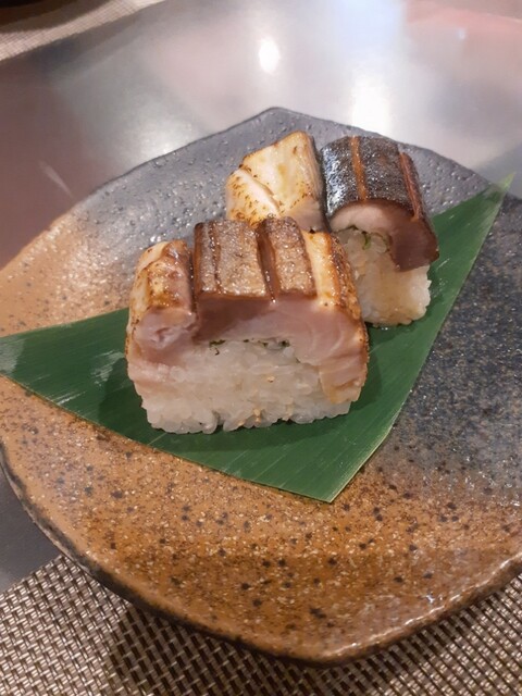 まずは突き出しの鯖の棒寿司にビックリ❗