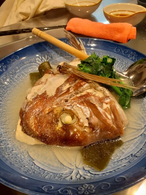 『真鯛のかぶと蒸し』上品な味付けで、なおかつ食べ応えあり、身のすみずみまで楽しみ、上品な出汁も