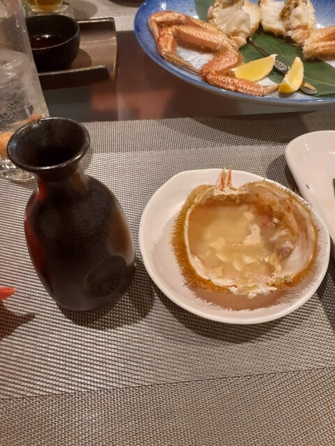 この日は毛蟹がメニューにあり、真っ先に注文させていただいた。味噌も身も甘くてジューシー菜の花と独活の酢味噌和えも、繊細で美味しい。白子の揚げ出しも、鰈の唐揚げも、海鮮サラダも抜群の美味しさ!先客の皆さんが、早い時間にお帰りになったので、貸し切り状態で贅沢な野里たけTIMEを満喫させて頂きました。夫婦で焼酎ボトル一本飲んでしまった(;゜0゜)!それほど楽しいひとときでした。ご馳走さまでしたm(__)m