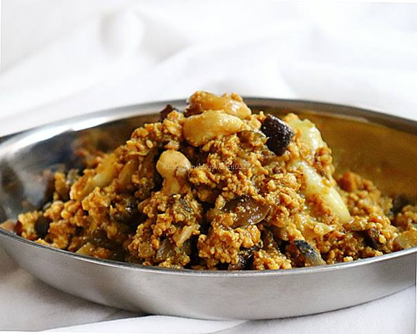 通常は鶏ひき肉とスパイスを絡めカレーソースで煮込み