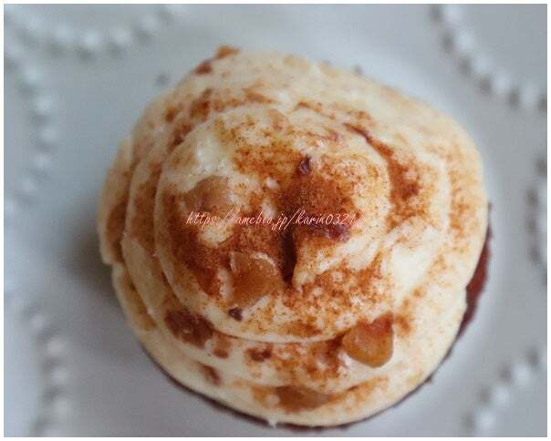 香ばしく焼かれた生地の上にはくるくるクリームフロスティングが。